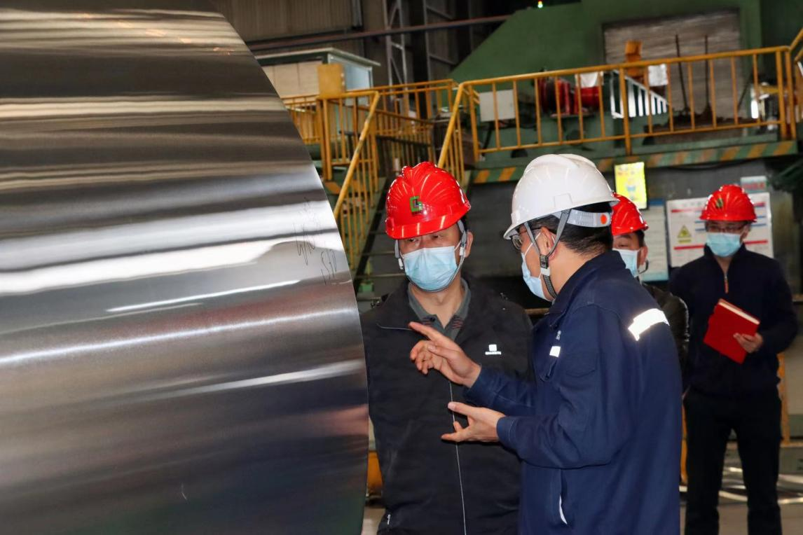 調(diào)研組一行深入貴州中鋁冷軋制造部的生產(chǎn)一線了解企業(yè)主要產(chǎn)品、技術(shù)工藝等情況。隨后,黃獻(xiàn)喜一行與貴州中鋁企業(yè)領(lǐng)導(dǎo)班子成員進(jìn)行交談,聽取了貴州中鋁對(duì)生產(chǎn)經(jīng)營情況、外貿(mào)進(jìn)出口情況、物流情況等相關(guān)匯報(bào),調(diào)研組一行對(duì)貴州中鋁的生產(chǎn)經(jīng)營模式及取得的成績給予了肯定。同時(shí)對(duì)公司在經(jīng)營過程中存在的問題及困難有了初步了解。