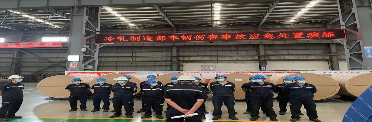 演練開(kāi)始前,冷軋制造部副部長(zhǎng)沈永坤對(duì)本次演練的背景、注意事項(xiàng)、步驟做了詳細(xì)的介紹。本次演練是根據(jù)現(xiàn)場(chǎng)生產(chǎn)環(huán)境存在的危險(xiǎn)情況而設(shè)定的場(chǎng)景,現(xiàn)場(chǎng)作業(yè)人員對(duì)發(fā)生事故后要勇于肩負(fù)起各自的職責(zé),按照“第一時(shí)間發(fā)現(xiàn),第一時(shí)間匯報(bào),第一時(shí)間處置”的原則進(jìn)行處理。